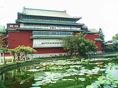 这个在日据时代当作商业陈列馆,以展览商品促进贸易为目的,功能类似于世贸展览中心的展览馆,抗战胜利被国民政府接收整修后,将原来的木造建筑改成了中国宫殿式的6层楼建筑,绿色琉璃瓦搭配褚红墙身,尊贵典雅。