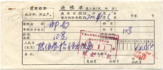 | 龚场 | 中国人民银行监利县支行龚场革命小组 | | | 全戳邮票 |