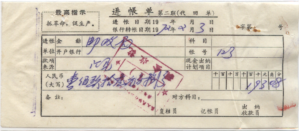 | 龚场 | 中国人民银行监利县支行龚场革命小组 | | | 全戳邮票 |