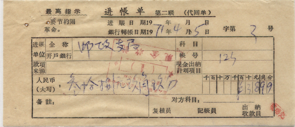 | 龚场 | 中国人民银行监利县支行龚场革命小组 | | | 全戳邮票 |