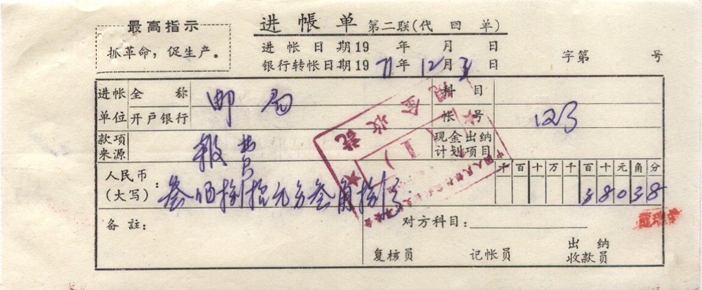 | 龚场 | 中国人民银行监利县支行龚场革命小组 | | | 全戳邮票 |