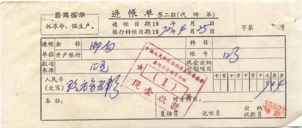 | 龚场 | 中国人民银行监利县支行龚场革命小组 | | | 全戳邮票 |
