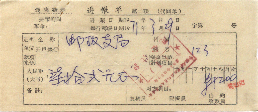 | 龚场 | 中国人民银行监利县支行龚场革命小组 | | | 全戳邮票 |