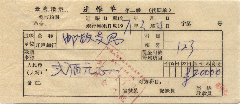| 龚场 | 中国人民银行监利县支行龚场革命小组 | | | 全戳邮票 |
