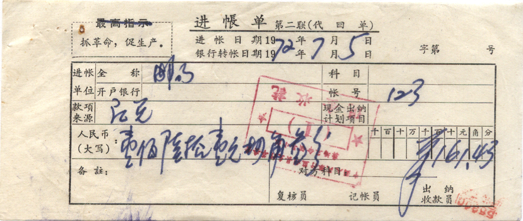 | 龚场 | 中国人民银行监利县支行龚场革命小组 | | | 全戳邮票 |