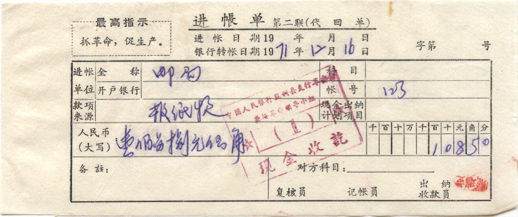 | 龚场 | 中国人民银行监利县支行龚场革命小组 | | | 全戳邮票 |