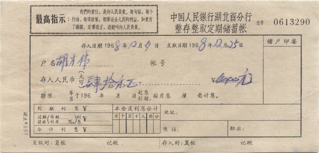 1968年12月04日湖北戳 *