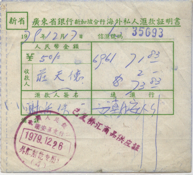 1979年12月17日新加坡分行戳 *