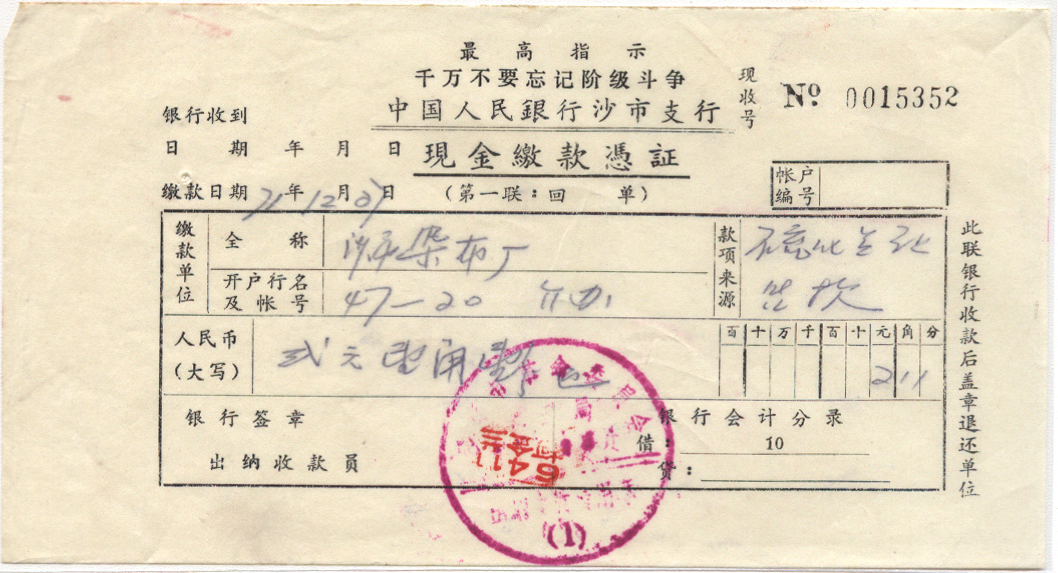 | 沙市 | 沙市市中国人民银行(支)行 | | | 全戳邮票 |