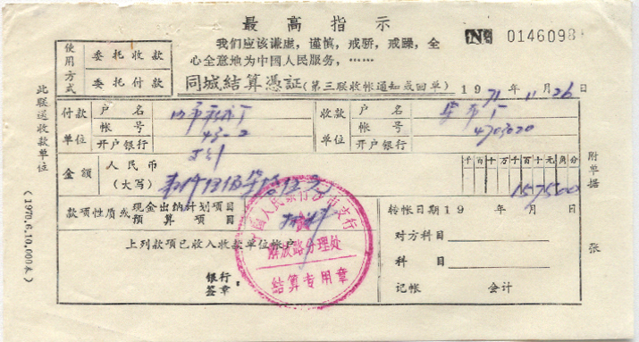 1971年11月26日沙市戳 *