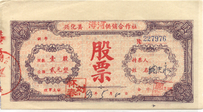 | 海河供销合作社 | 兴化县海河供销合作社 | | | 全戳邮票 |