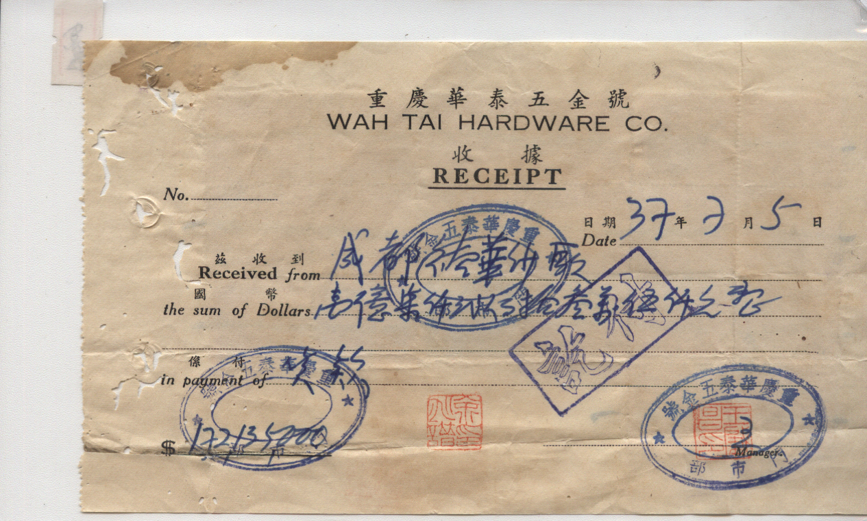 | 重庆 | 重庆华泰五金号 | | | 全戳邮票 |