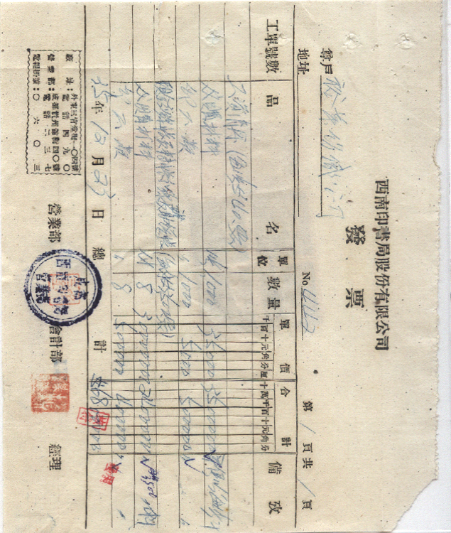 此件独一无二的藏品为年代趣味藏品  ,邮戳为      贴有印花税  * 此戳可能尚待精确解析,可联系优先免费核实,更欢迎邮友先进指正补充 联系我们