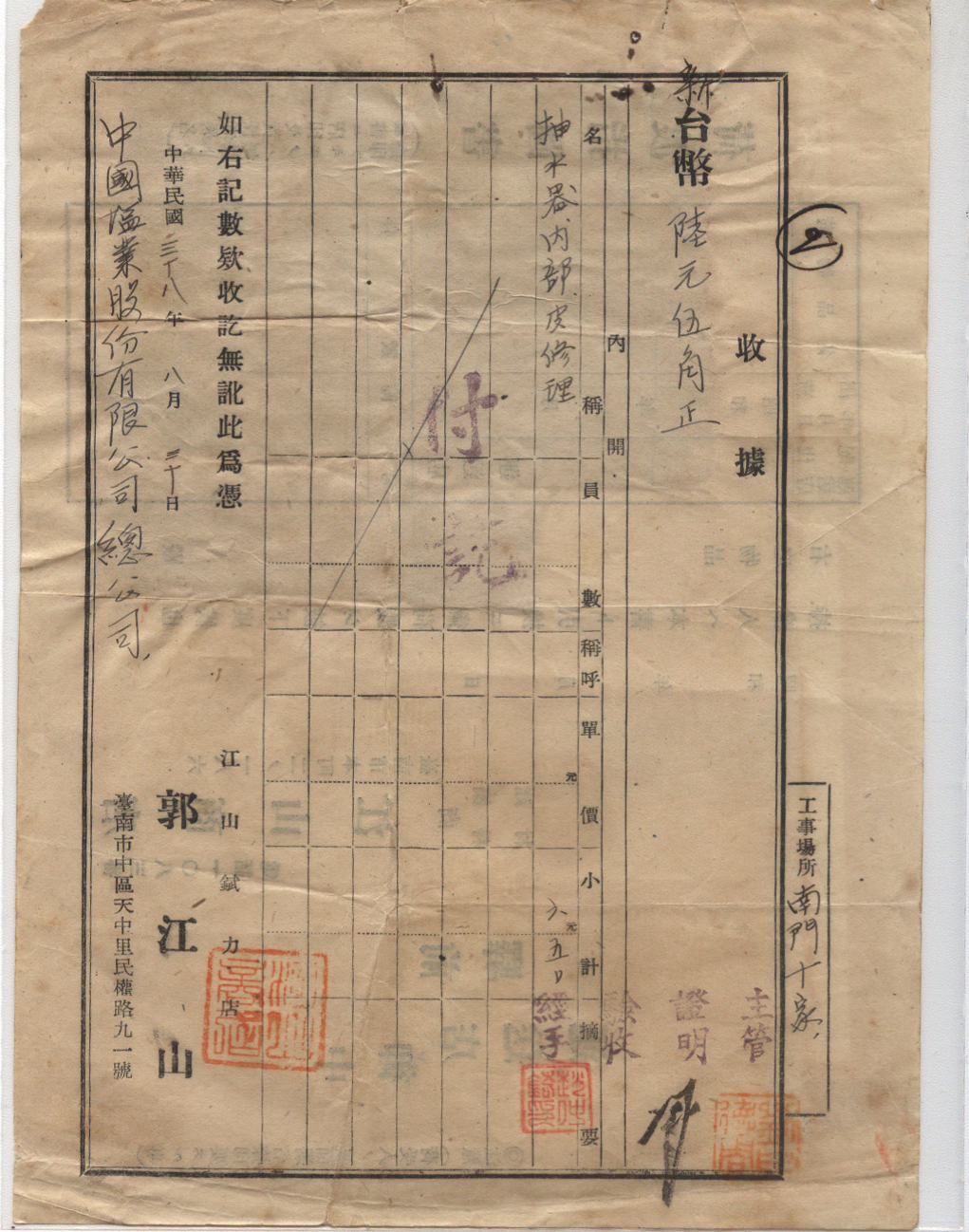 此件独一无二的藏品为年代趣味藏品 ,邮戳为 背面有印花税 * 此戳可能尚待精确解析,可联系优先免费核实,更欢迎邮友先进指正补充 联系我们
