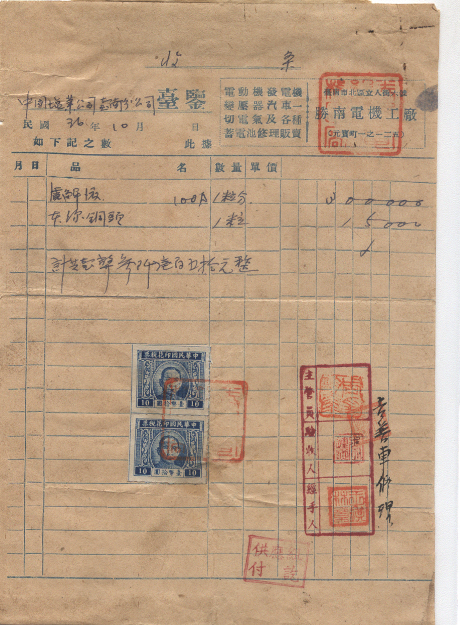 此件独一无二的藏品为年代趣味藏品  ,邮戳为      贴有印花税  * 此戳可能尚待精确解析,可联系优先免费核实,更欢迎邮友先进指正补充 联系我们