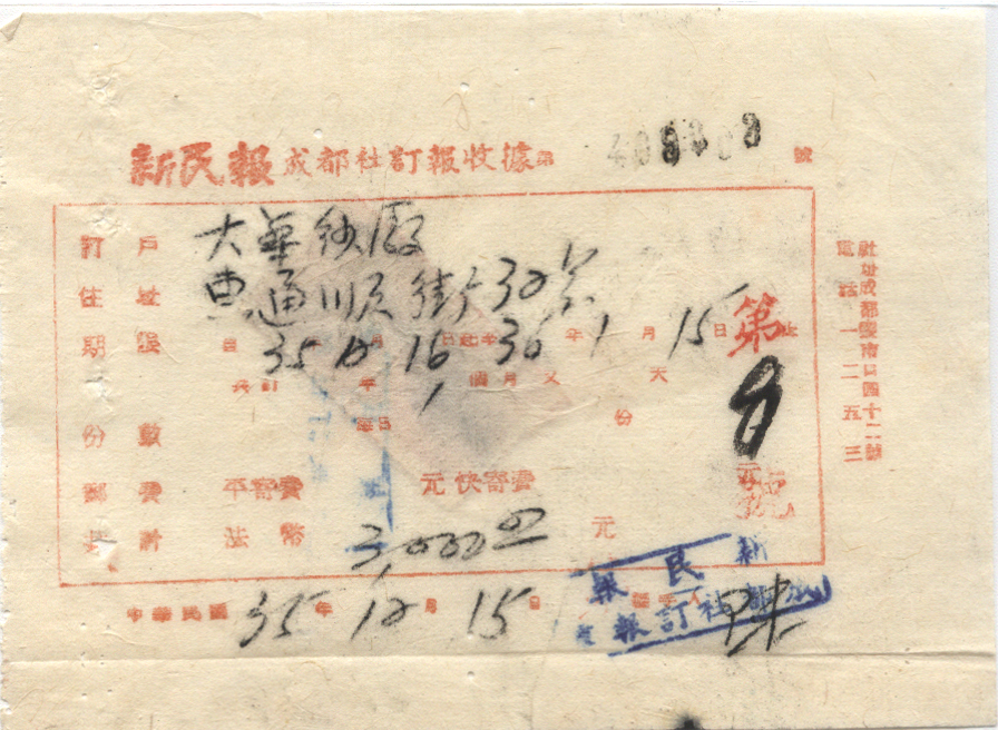 1946年12月15日成都戳 *