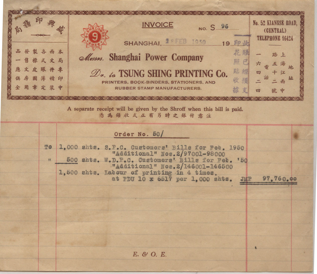 1950年02月28日上海戳 *