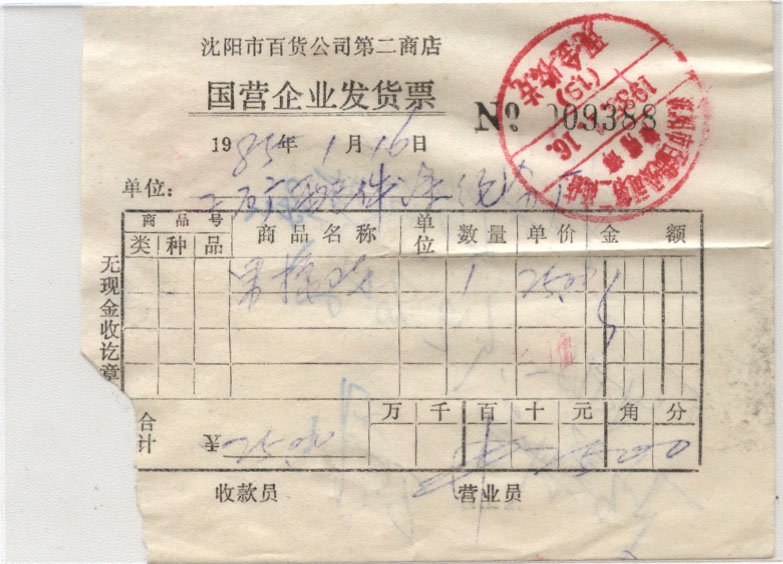1985年01月16日沈阳戳 *