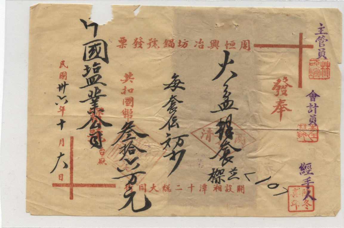 此件独一无二的藏品为年代趣味藏品  ,邮戳为      贴有印花税票  * 此戳可能尚待精确解析,可联系优先免费核实,更欢迎邮友先进指正补充 联系我们