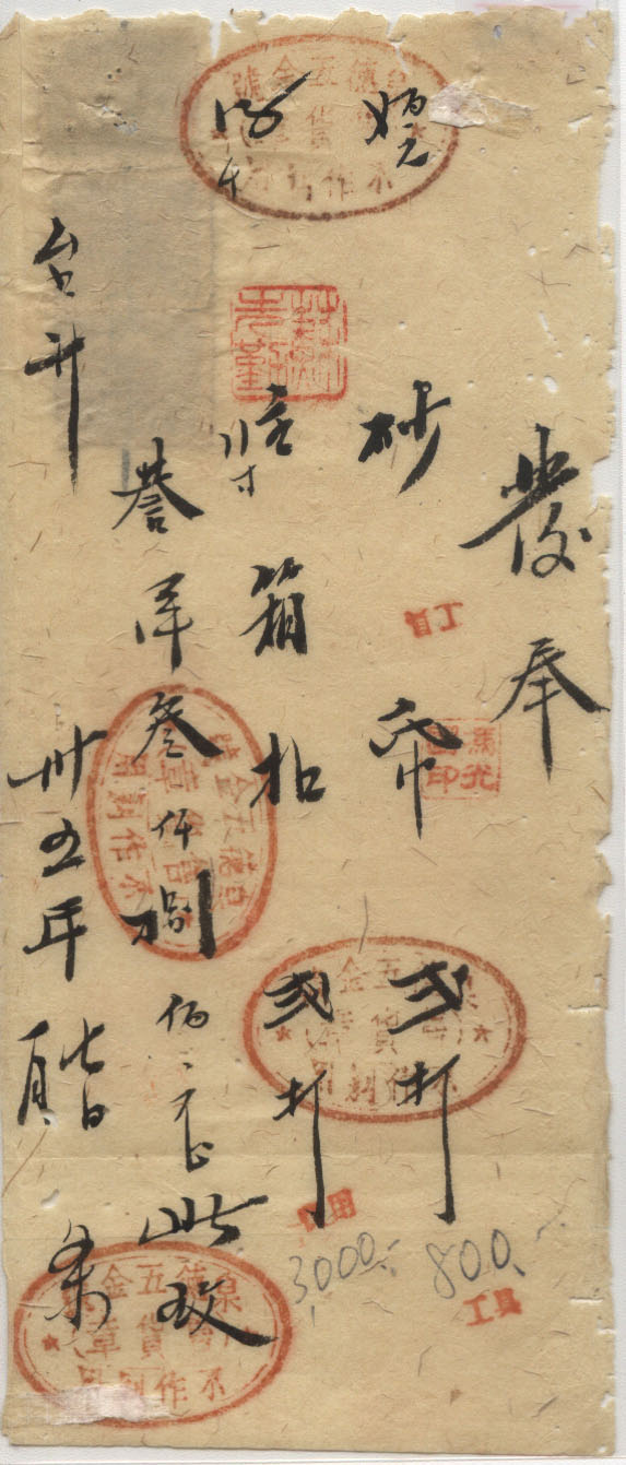 此件独一无二的藏品为年代趣味藏品  ,邮戳为      贴有印花税票  * 此戳可能尚待精确解析,可联系优先免费核实,更欢迎邮友先进指正补充 联系我们