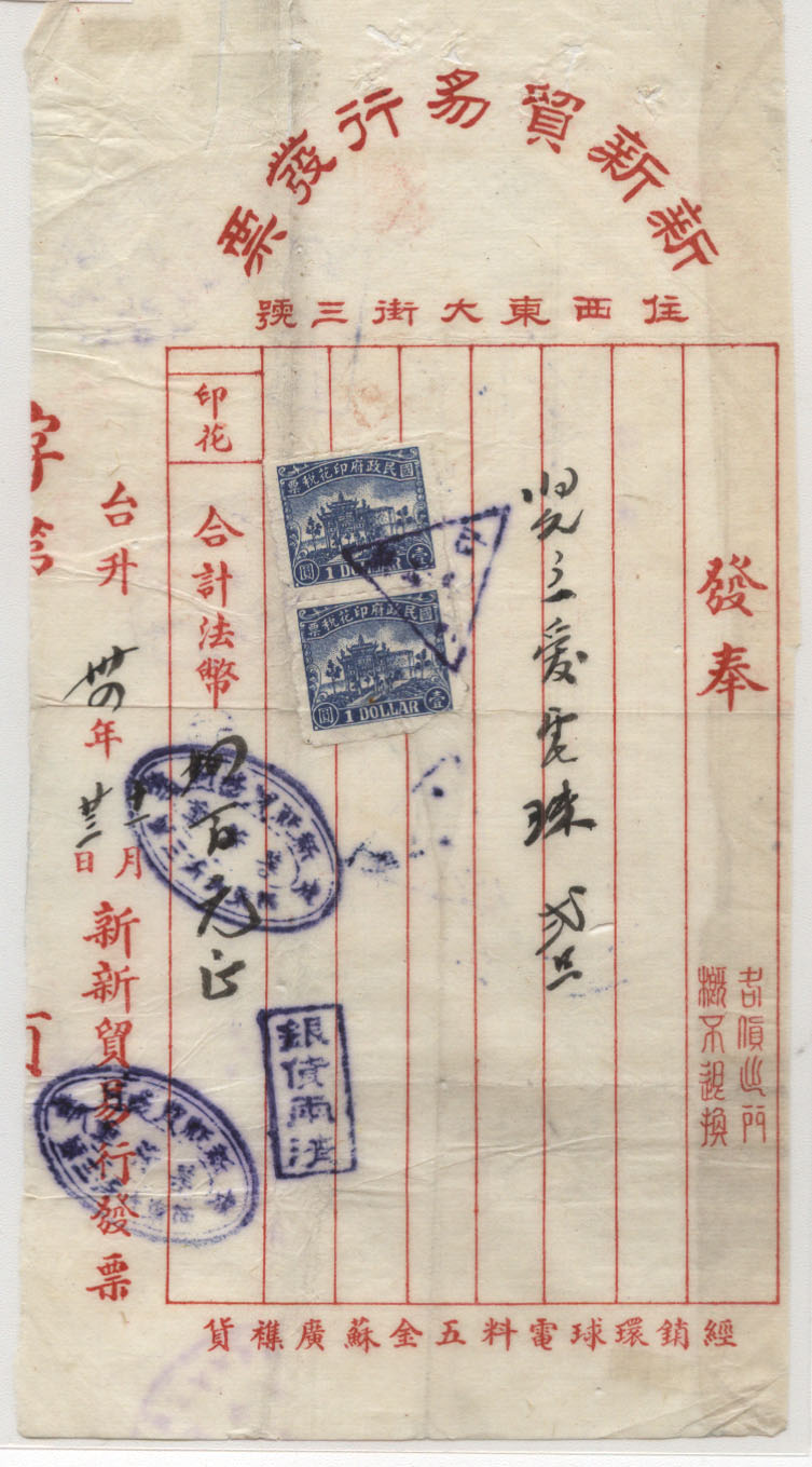 | 成都 | 成都成都新新贸易行 | | | 全戳邮票 |