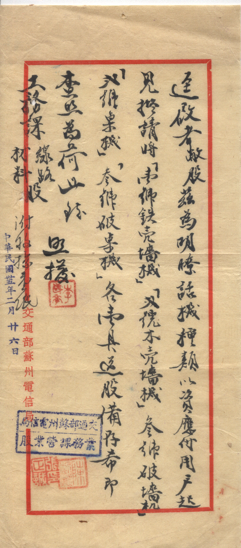 | 苏州 | 苏州交通电信局 | | | 全戳邮票 |