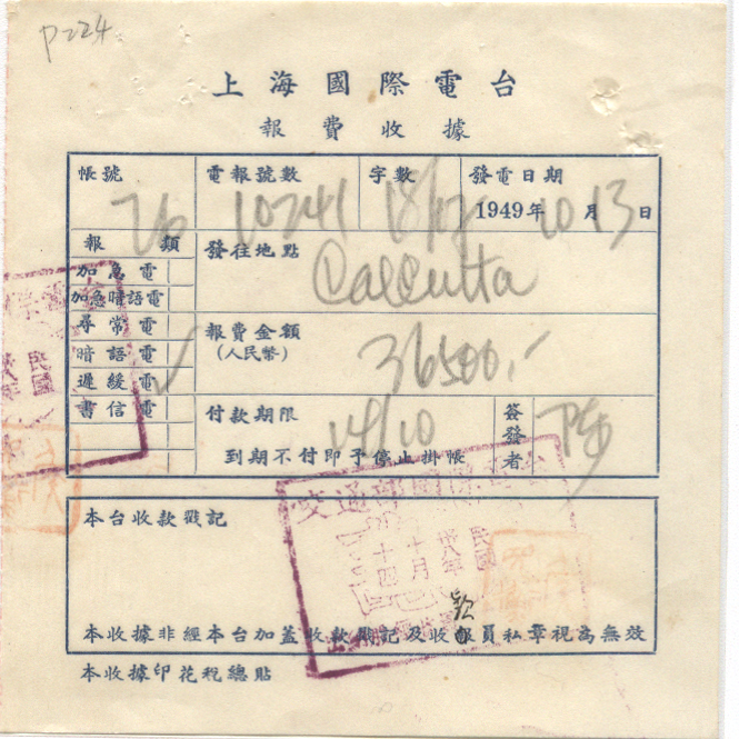 1949年10月14日国际电台戳 *