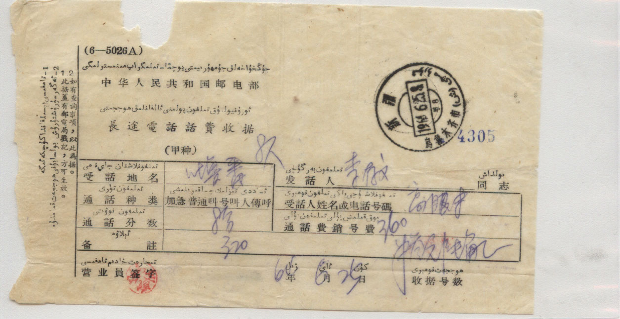 1964年06月25日乌鲁木齐戳 *