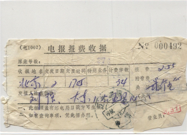 1984年01月02日沈阳戳 *