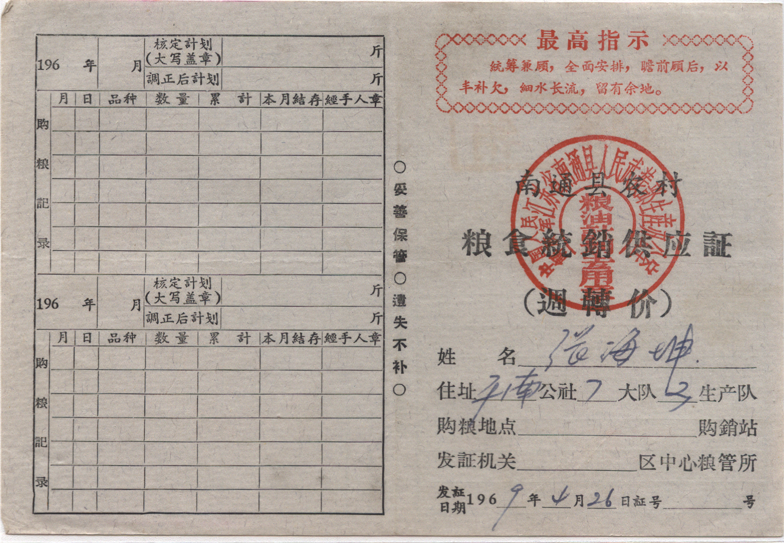 1969年04月26日南通县戳 *