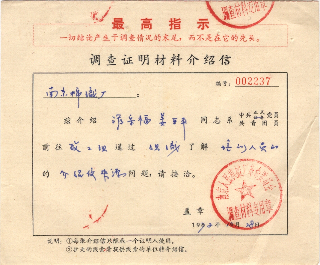 【 江苏省南京市 -- 人民机械革命委员会 --调查材料专用章 】