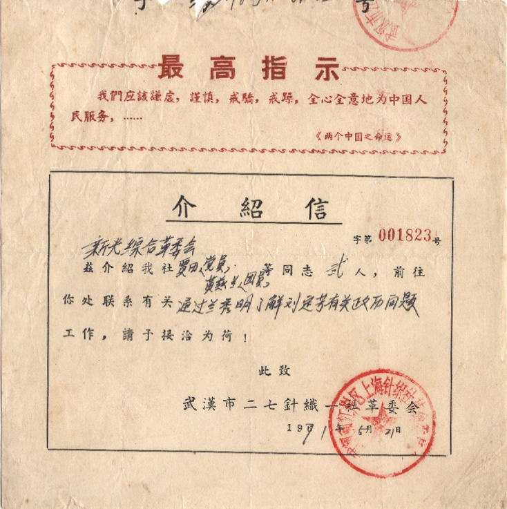 【 武汉市江岸区 -- 上海针织社革命委员会 -- 】