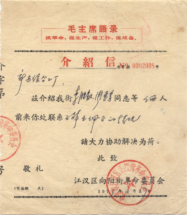 【 武汉市江汉区 -- 花楼街革命委员人 -- 】