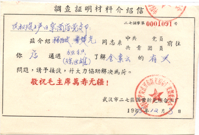 | 二七区 | 武汉市二七区新光综合厂(支)部委员会 | | | 全戳邮票 |