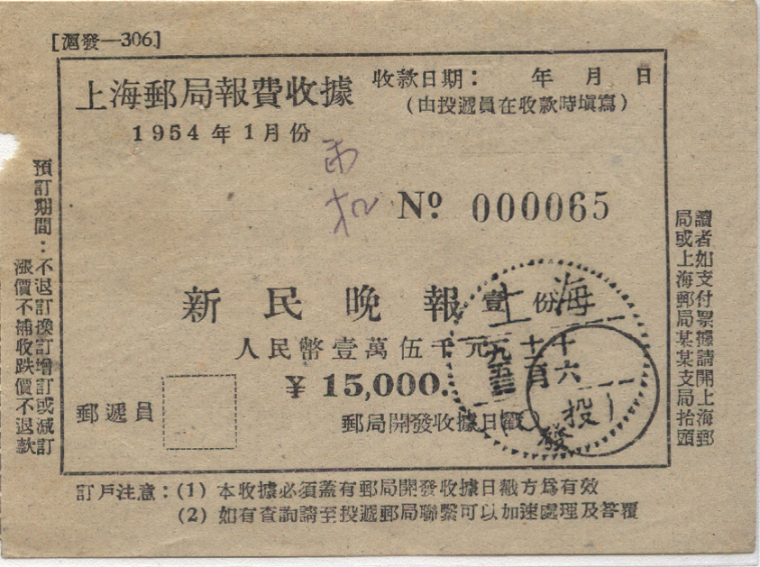 1953年12月16日上海戳 *