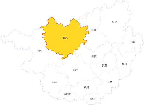 • 河池地区 _1971】1971年设立河池地区。南宁、桂林、百色、玉林、柳州、梧州、河池、钦州8个专区更名为地区。