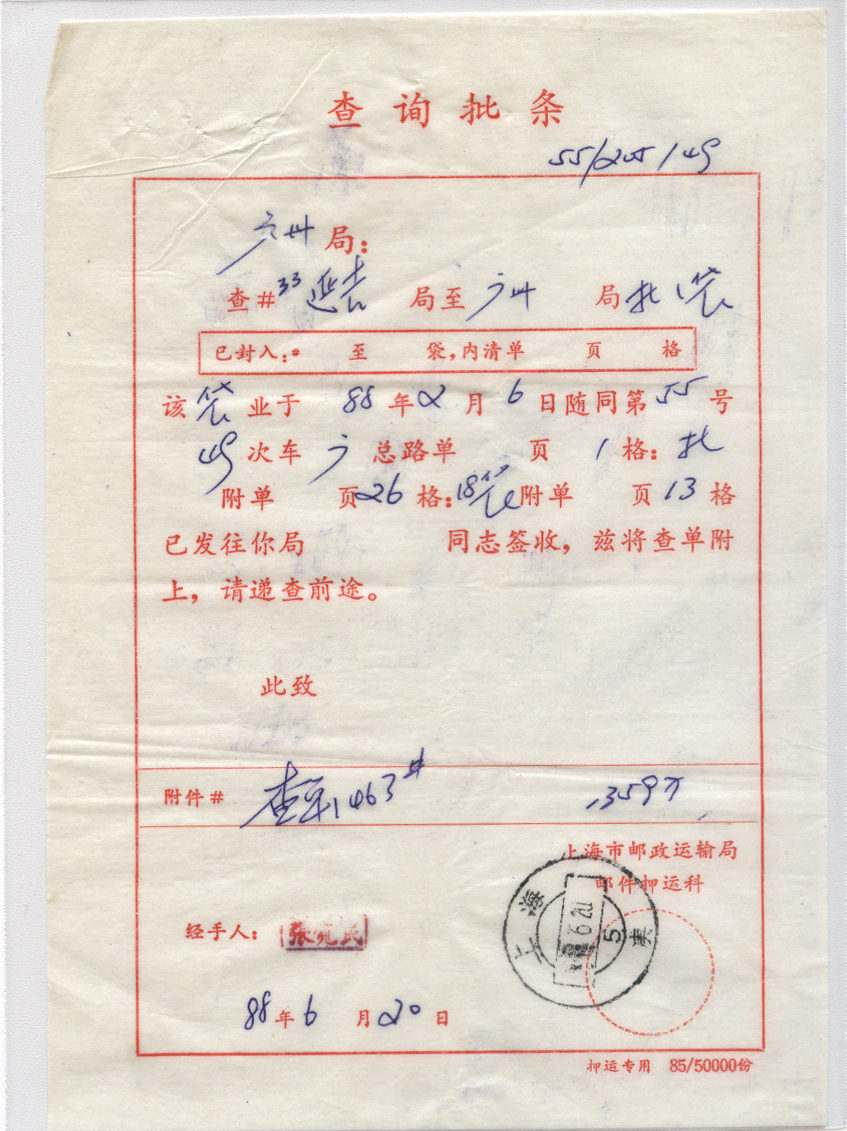 1986年06月20日上海戳 *