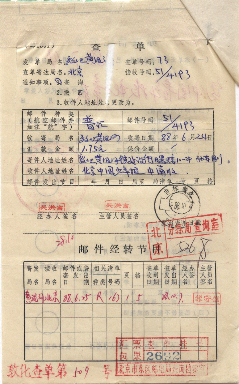 1988年10月06日敦化戳 *