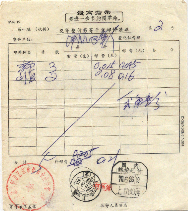 1970年06月26日上海戳 *