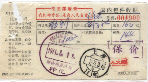 此件独一无二的藏品为年代趣味藏品  ,邮戳为      红色语录  * 此戳可能尚待精确解析,可联系优先免费核实,更欢迎邮友先进指正补充 联系我们