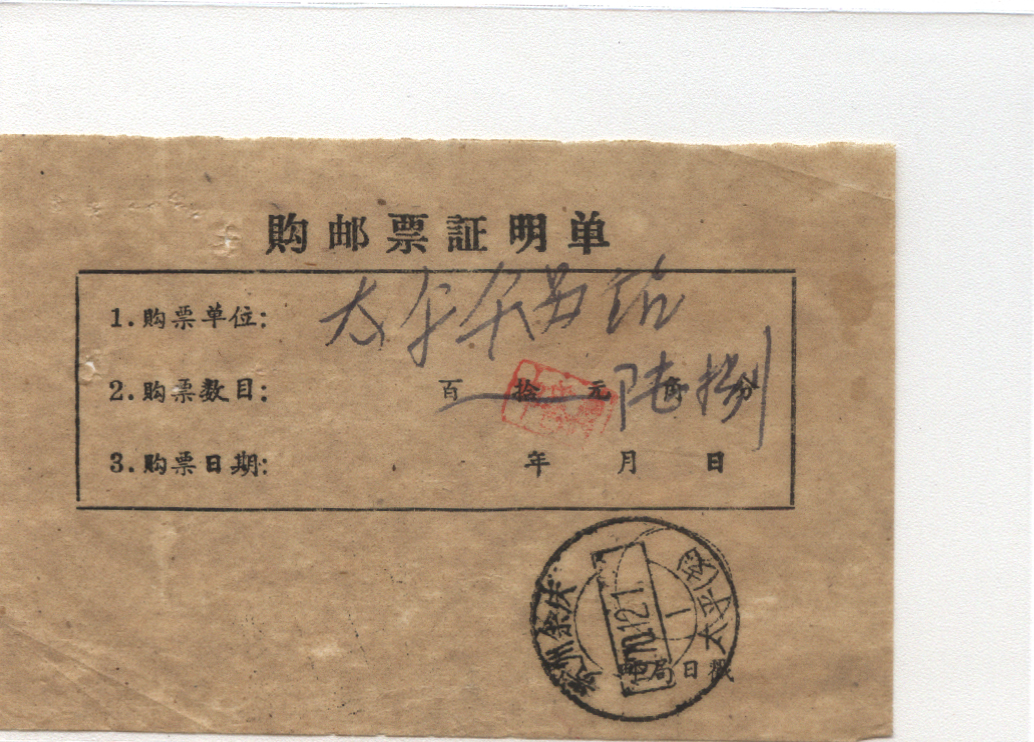 此件独一无二的藏品为年代趣味藏品  ,邮戳为      印刷标准单,加盖私人章  * 此戳可能尚待精确解析,可联系优先免费核实,更欢迎邮友先进指正补充 联系我们