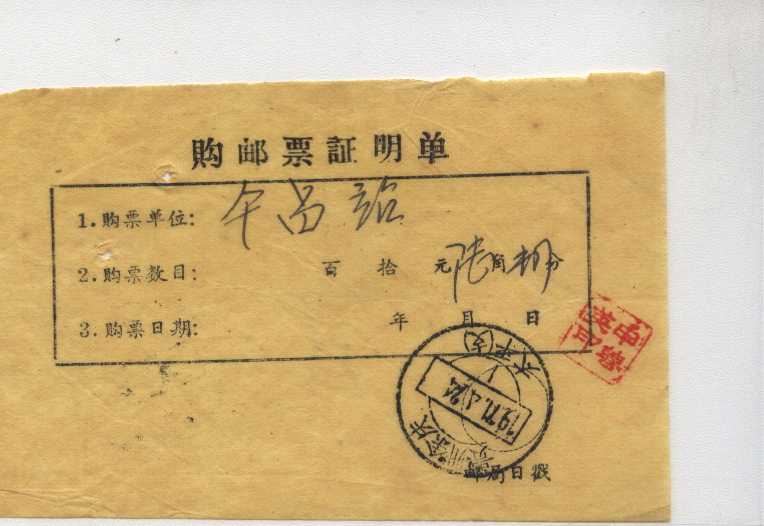 此件独一无二的藏品为年代趣味藏品  ,邮戳为      印刷标准单,加盖私人印章  * 此戳可能尚待精确解析,可联系优先免费核实,更欢迎邮友先进指正补充 联系我们