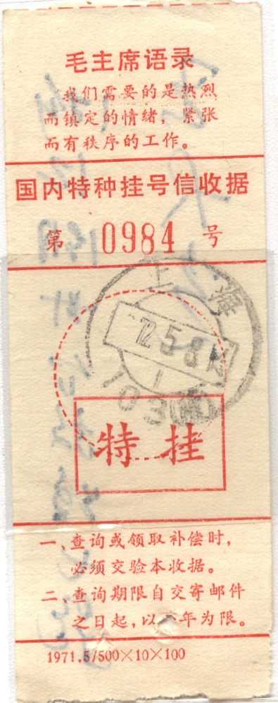 此件独一无二的藏品为年代趣味藏品  ,邮戳为      红色语录,背面有地址  * 此戳可能尚待精确解析,可联系优先免费核实,更欢迎邮友先进指正补充 联系我们