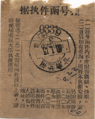 此件独一无二的藏品为年代趣味藏品  ,邮戳为      戳左读,沿用中华邮政右读  * 此戳可能尚待精确解析,可联系优先免费核实,更欢迎邮友先进指正补充 联系我们