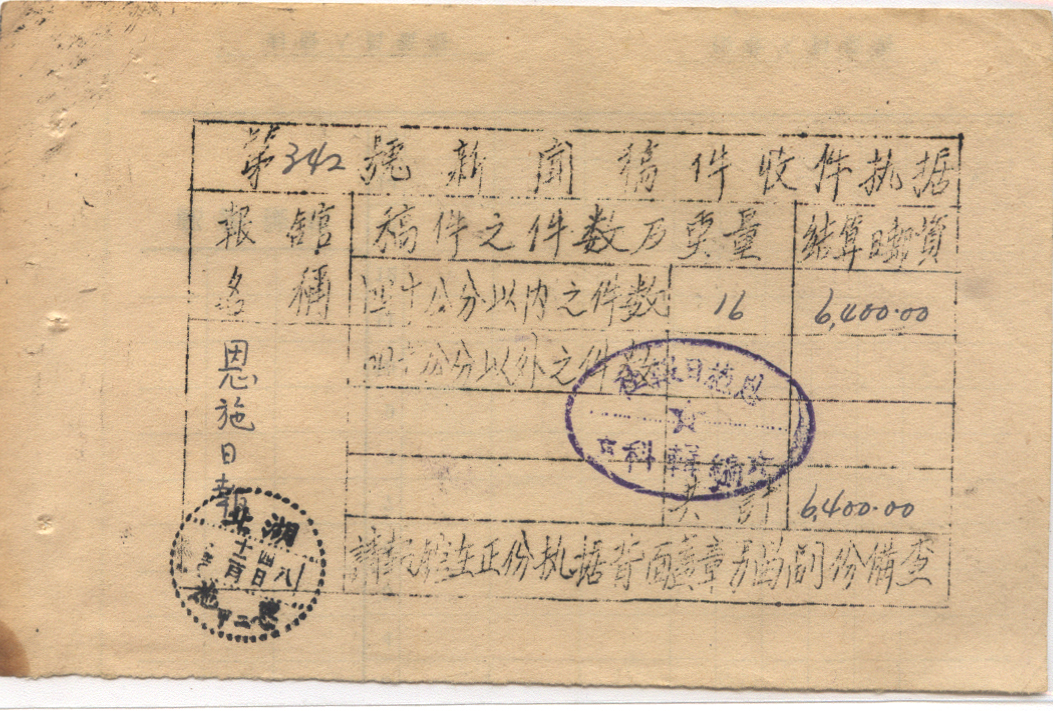 此件独一无二的藏品为年代趣味藏品  ,邮戳为      戳右读,手写油印,沿用裁切的邮件封发清单背面  * 此戳可能尚待精确解析,可联系优先免费核实,更欢迎邮友先进指正补充 联系我们