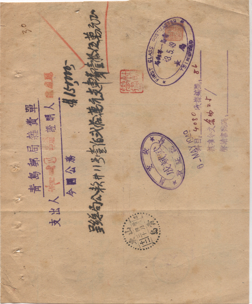 1949年04月30日青岛戳 *