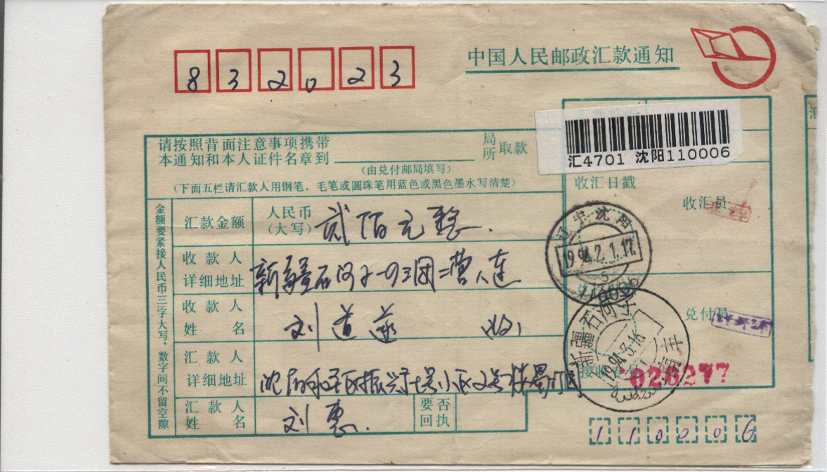 1994年02月01日沈阳戳 *