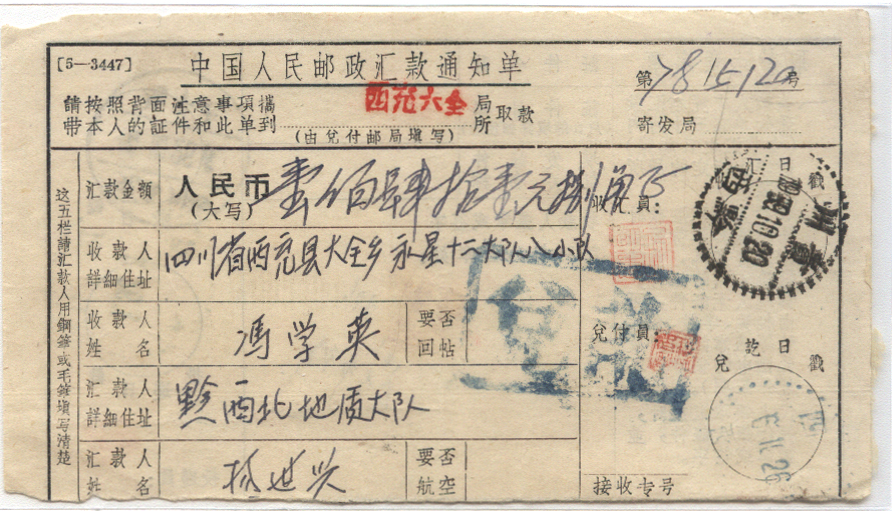 此件独一无二的藏品为年代趣味藏品  ,邮戳为      加盖兑讫章  * 此戳可能尚待精确解析,可联系优先免费核实,更欢迎邮友先进指正补充 联系我们
