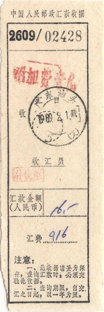 此件独一无二的藏品为年代趣味藏品  ,邮戳为      汇费0.16元,加盖附加费1角  * 此戳可能尚待精确解析,可联系优先免费核实,更欢迎邮友先进指正补充 联系我们