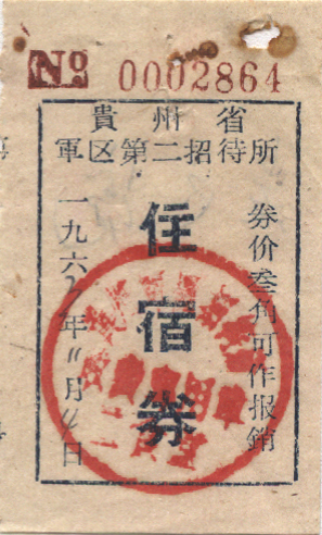 | 军区第二招待所 | 贵州省军(区)第二招待(所) | | | 全戳邮票 |